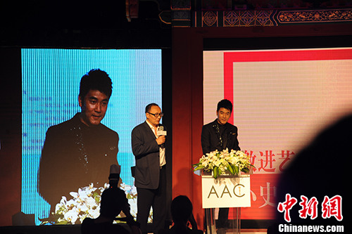 朱青生(左)在第九届AAC艺术中国颁奖现场。宋宇晟摄