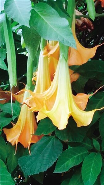 这究竟是一株什么花?重庆晚报记者联系上市药物种植研究所的植物专家周卯勤,经过现场辨认,确定这是黄花曼陀罗。