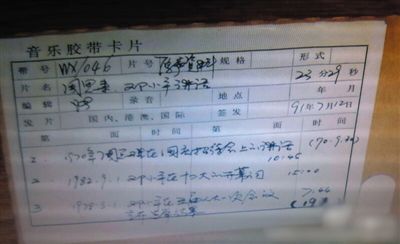 崔永元在微博中贴出的音乐胶带卡片照片。