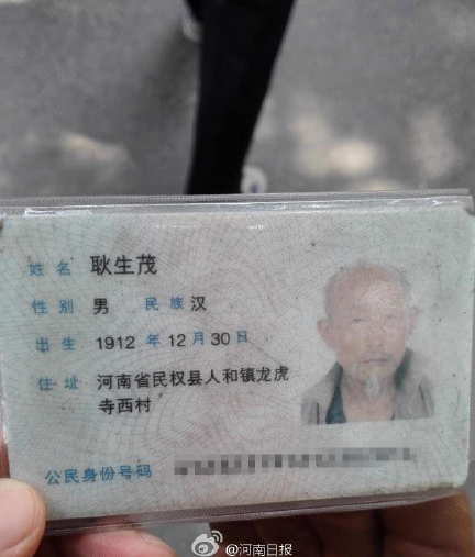 6月9日上午,记者在郑州金水区纬五路第一小学门口见到一位乞讨老人。老人拿出身份证,称其叫耿生茂,1912年12月30日出生,今年103岁,老家商丘民权县人和镇龙虎寺西村,现在家中没有亲人。希望相关部门尽早解决这位老人的晚年生活问题。
