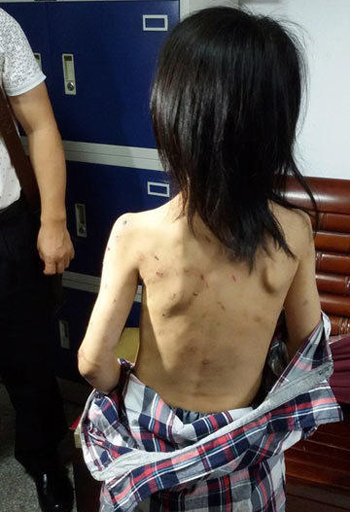 姐弟俩遭虐打满身伤痕