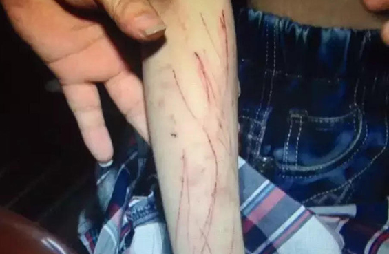 两个孩子遍体鳞伤,浑身都是斑斑点点的淤青和伤痕,从手到脚、前胸后背、大腿、腹部几乎找不到一块好皮肤。小琳的右脸颊还有一大片延至眼窝的淤青,左脸颊下侧和两条手臂则是横七竖八的血痕和血痂,惨不忍睹。