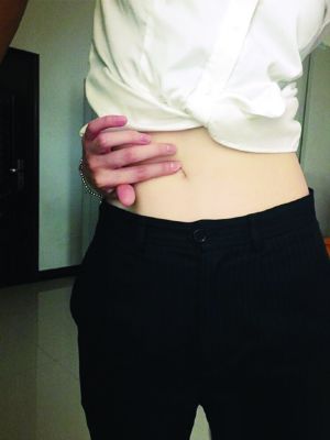 现代快报记者尝试“反手摸肚脐”