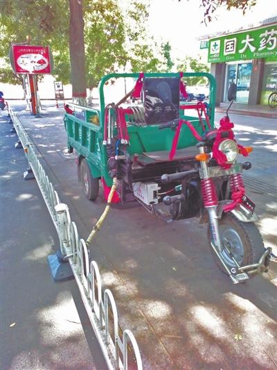 原标题:环卫工为防三轮车被偷 花千元配19把锁(图)