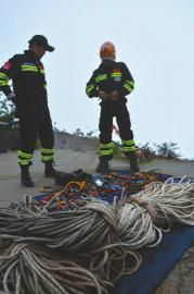 在外围拉上警戒线,并开始清点和整理装备。随后,队长王麒佩戴好安全带、安全头盔、对讲机、上升器、下降器等专业装备,另外3名队员则帮忙进行结绳等准备。上午11时10分许,王麒在队员们的协助下,开始从悬崖边往下降。下午2时40分许,王麒回到悬崖上补充体力,“最深下到近300米,没发现什么有价值的线索。”