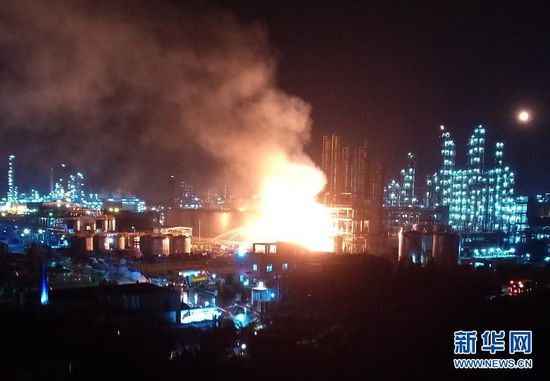 6月12日晚拍摄的火灾现场。江苏南京市化工园区德纳化工厂12日21时15分许发生火灾并引起爆炸。新华社记者韩瑜庆摄