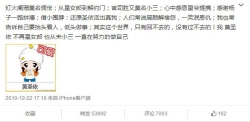 黄圣依昔日曾否认当小三(资料图)