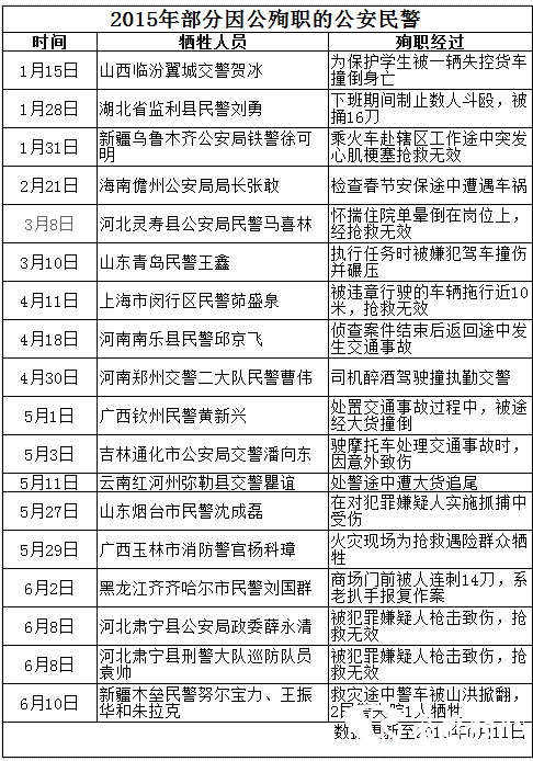 据人民网不完全统计,2015年至今,已有近20位公安民警因公牺牲,可能还有更多人的事迹因未能见诸媒体而不为人所知。以下来盘点上半年媒体公开报道的20余位因公殉职的民警: