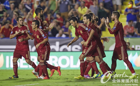 西班牙队员庆祝进球