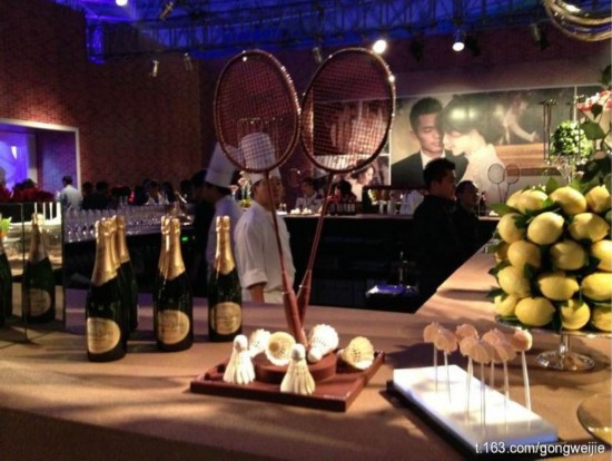 婚礼当天,主场地也被设计成羽毛球拍形状的舞台,包括请柬,采用北京奥运会门票的形式。
