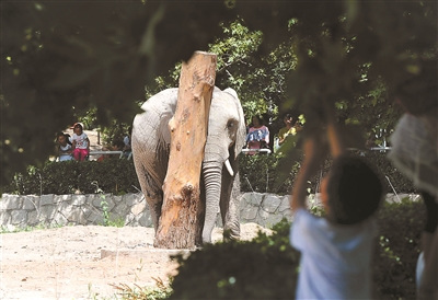 昨天下午,北京青年报记者在北京动物园看到,大象正在栏舍蹭一个晃晃悠悠的木桩,对于这种行为很多游客表示不解,发表在果壳网的一篇名为《怎样给大象做玩具》的文章对这个“痒痒挠”作出了解释。