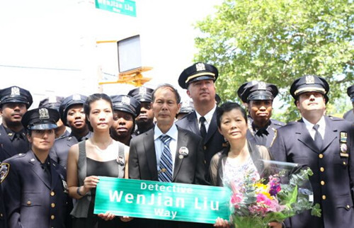 “警探刘文健路”在纽约揭牌 纪念殉职华裔警察