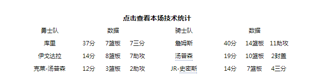 原标题:詹皇40+14+11难挽败局 库里37分勇士3-2骑士