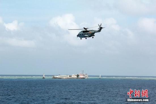 资料图:图为南海舰队远海训练编队直升机空中巡航南沙。中新社发 高毅 摄