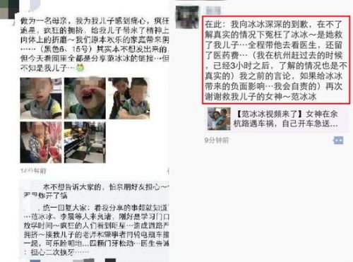 被救小孩家长先是责怪因录制节目导致交通事故,后向范冰冰致歉发感谢