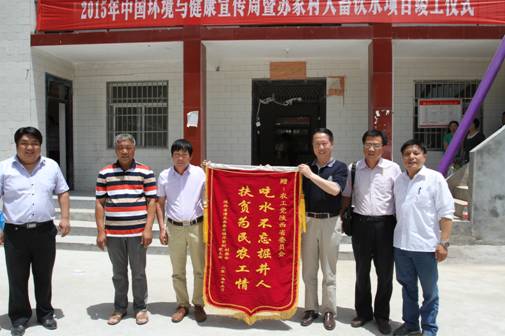 2015年6月5日,值此世界环境?;と?,农工党陕西省委会、渭南市委会联合在潼关县秦东镇苏家村社区服务中心举行2015年(第八届)中国环境与健康宣传周暨苏家村人畜饮水项目竣工仪式。省委会专职副主委王安龙,渭南市委会副主委马四虎、秘书长王格巧,秦东镇镇长陈永笛,苏家村村长张建水等单位的领导,以及来自西安郭氏正骨骨科医院、渭南市中心医院、渭南市妇幼保健院、临渭区中医医院、临渭区卫生学校、高新区良田办卫生院等单位的医疗专家和当地群众100多人参加了当天的活动。张建水代表苏家村村委会向农工党陕西省委会赠送了“吃水不忘掘井人 扶贫为民农工情”锦旗,感谢农工党在扶贫开发工作中解决了苏家村多年久拖难办的人畜饮水问题。