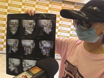 舒雪向记者展示整形失败的脸部X光片。季娜娜 摄