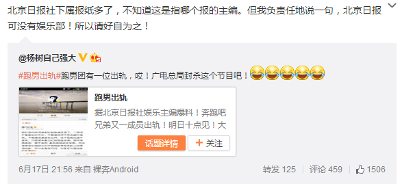 “出轨事件”不断发酵,但北京日报社副主任周健森称该报没有娱乐版块,疑似斥众多爆料号炒作。