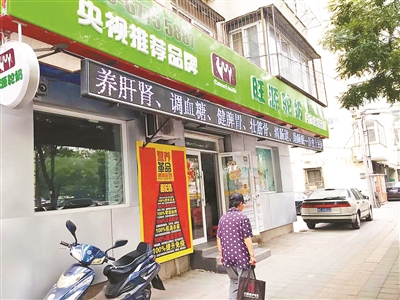 在双井广渠门内大街上,一家绿色门脸的某品牌驼奶专营店开在一幢居民楼一层,非常醒目,除了央视推荐品牌字样,民族传统药膳等醒目字样,在门楣上方的字幕显示屏上,有关驼奶的功效滚动播放。