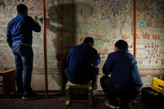 ?;ふ庑┯谐砂偕锨昀返男《纯?,正需要这样细致入微的工作,沿着昔日的丝绸之路分布着五百多座洞窟,它们是穿越时间的艺术,是世界上最重要的佛教宝藏之一。