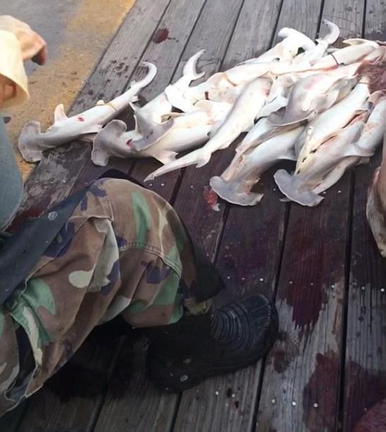 这只被捕鲨鱼重830磅(约376公斤),被拉上岸时已经死亡。水手直接剖开鲨鱼肚子,伸手从鲨鱼肚子里取出已经死了的小鲨鱼。经过这里的Bratcher将这一幕拍了下来。他的大儿子跟他说:“爸爸,他们这样做是错的。”