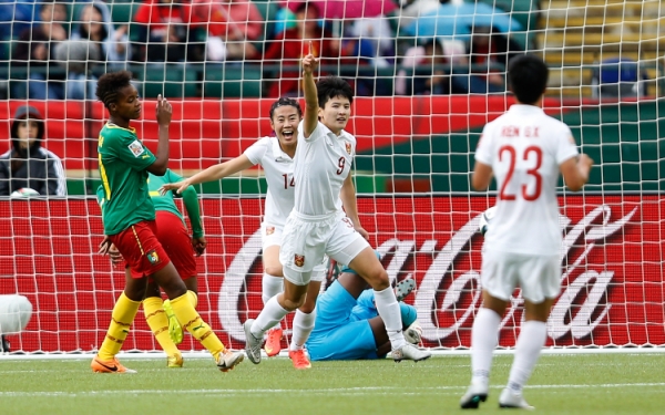 当日,在加拿大埃德蒙顿英联邦体育场举行的2015女足世界杯赛八分之一决赛中,中国队对阵喀麦隆队。