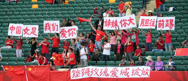 6月20日,中国队球迷为中国女足加油助威。