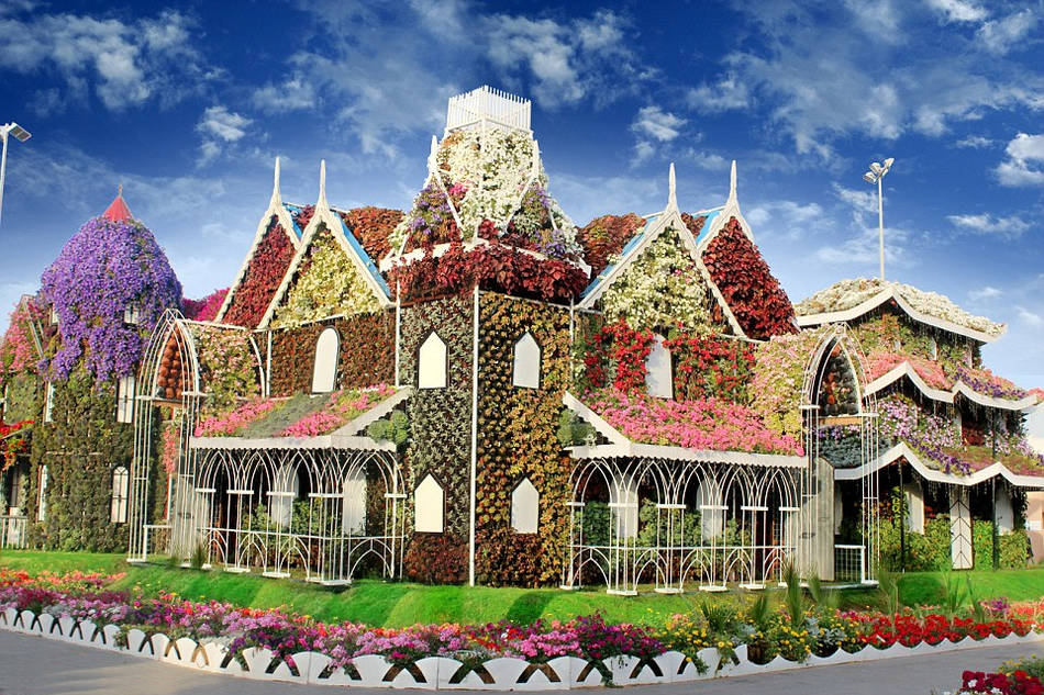 鲜花组成的城堡。