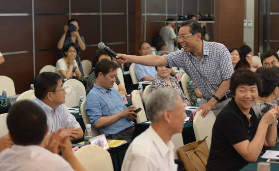 会场上,钟南山鼓励大家发言。胡卫东/摄