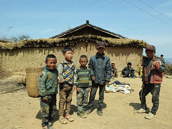 图为云南省怒江州福贡县知子罗贫困村,一位小孩在家门口张望(3月29日摄)。新华社记者胡超摄