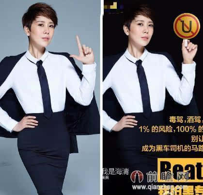 某专车策划反“黑专车”广告一石激起千层浪,两位代言人吴秀波海清躺着也中枪,反“黑专车”海报照片疑似后期PS,随即有人放出海清吴秀波两人未经PS照片,看来两位明星代言人丝毫不知情会把照片用于反“黑专车”。但其中一位当事人海清在25日转发了代言微博,疑似知道照片用作此用途,后因代言被骂后,删掉微博。