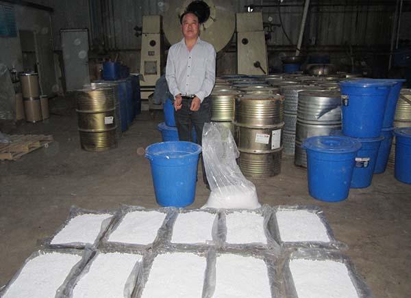 2015年5月,陕西省咸阳市三原县警方披露了一起特大制贩运毒品案件,在该县大程镇一间制药车间内,查获成品甲卡西酮(俗称“丧尸药”)128千克,半成品2吨,易制毒化学品丙酮等21桶2.85吨,缴获毒资500余万元。