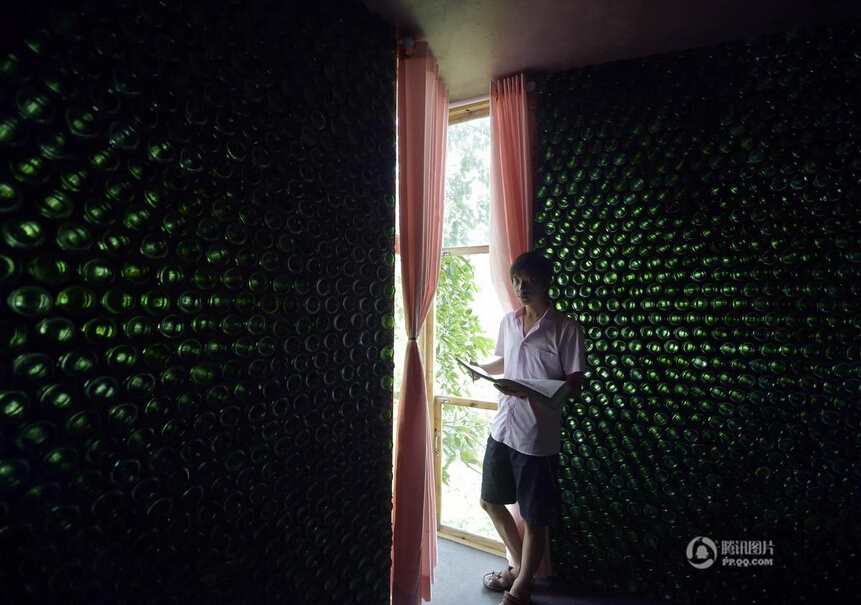 走入屋内,阳光从玻璃瓶反射进来,室内光线既柔和也透出星星点点的绿光,让人有置身于绿色星空的感受。建房子体现创业实力李荣均说话语速特别快,“我想建造一所有艺术感又能使用的办公房,这也是我创业的样品房。这样投资者能从实物的角度,检测到我的实力。”李荣均建办公样板房的计划,是和创业梦想并行的。