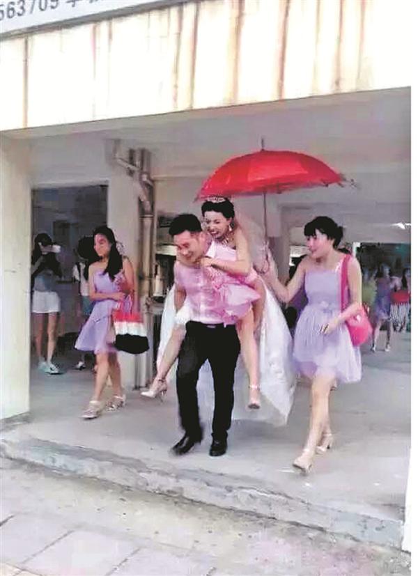 女生毕业晚会后出嫁 出宿舍马上被抱上婚车