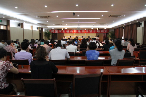 2015年6月16日上午,民盟河北省委市级领导班子培训班在河北省社会主义学院开班。来自全省12个盟组织的40余位市级领导班子成员参加了培训。本次培训班的主要任务是学习领会中央统战工作会议精神,加强我省市级盟组织领导班子建设,提高市级领导班子成员的政治素养。民盟河北省委主委边发吉,民盟中央副秘书长、组织部部长陈幼平,省委统战部副部长李文杰,省社会主义学院副院长姜虹,盟省委副主委鲁平、田咏出席开班仪式??嘁鞘接陕称街鞒?。