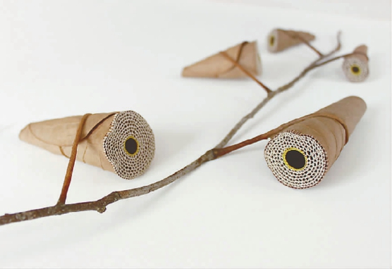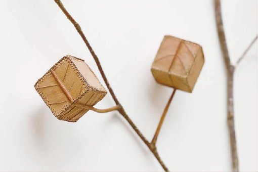 从小学习针线编织的苏珊娜·鲍伊尔,心思细腻,曾经是一名模型制作师,工作之余喜欢将一些破碎、残断的枯叶“领”回家,利用细线、微型钩针缝缝补补,要么给叶子织件毛衣,要么将它们缝在一起,制成“魔方” 、圆锥体等造型独特、温馨雅致的编织饰品。