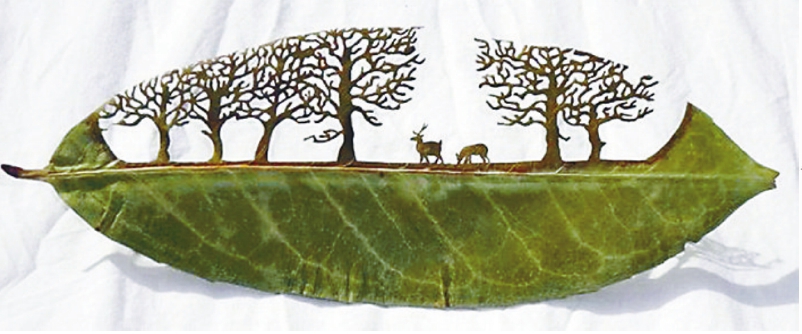 对于大多数艺术家而言,铅笔、画刷、刮刀……都不是新鲜的创作工具,可你见过用外科手术刀搞创作的艺术家吗?洛伦佐·杜兰身体力行地向世界证明艺术无界限。在一次偶然的机会中,毛毛虫在阳光下啃食树叶的样子突然激发了杜兰的艺术创作灵感。他挑选了一些大小合适的落叶,将它们清洗干净、烘干、平整后,用微型手术刀在树叶上雕刻出惟妙惟肖的景物,并用特殊的清漆封装,以便长期保存。