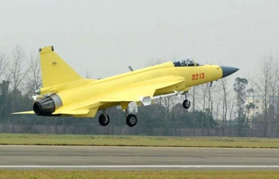 资料图:近日,在国内某飞机制造厂,新生产的“枭龙”战斗机进行了升空试飞。该机以“黄皮机”的形态出现,刷涂了编号“0213”。