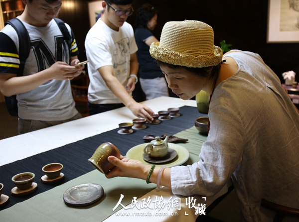 “美茶配美器。”孙刚说,“荣宝斋茶文化公司将古树普洱茶与台湾黄大安先生的柴烧融合展览,彼此共鸣。既是对普洱茶文化的推动,也是海峡两岸文化的深入交流与融合。”