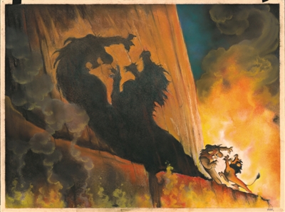 该动画是迪士尼于1994年推出的,其中的主角小狮子辛巴成为迪士尼动画历史上最勇敢的角色之一。此次展览除了辛巴的最初原型展示外,还呈现了故事背景创作的种种细节。类似其在环境氛围和视觉冲击力等方面的塑造中,是受到非洲之旅的启发,继而通过巧妙的色彩运用。而在概念图和色键绘画中,动画艺术家们也通过红橙漩涡营造愤怒和危险的气氛,突出那场高潮战斗的戏剧性和冲突感。