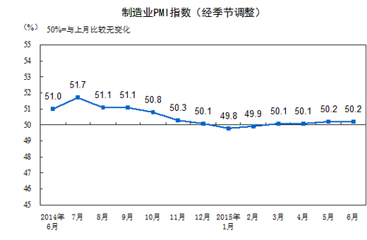 6月制造业PMI为50.2%与上月持平 制造业小幅扩张