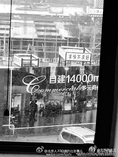 昨天下午,北青报记者找到了照片中显示的工地。该工地接近东六环,位于通州区潞苑东路以东,珠江维拉小镇小区以南。这片工地东西约500米,南北也有300多米,面积较大。经过对网络图片中的细节比对,“求快不求好”的横幅悬挂在工地内部西北角位置。在工地附近唯一的高点珠江维拉小镇小区住宅楼的顶部,北青报记者俯视看到,工地内“求快不求好”的白底蓝字横幅下方还悬挂有另一条横幅,上面写着“事故常来找”,该横幅并未被拍摄进网络图片中。通过对比,很有可能是工地当时还没来得及悬挂下半部分标语,恰好此时网友拍摄了图片。