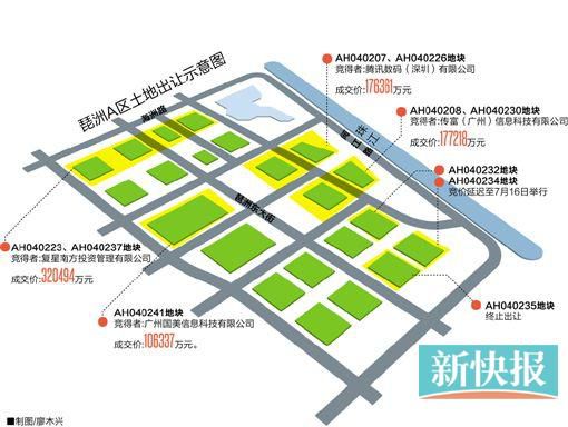 今年5月28日,广州市国规委挂出海珠区琶洲A区10个地块的土地出让公告,成为琶洲近年来最大规模的一次土地集中出让挂牌。其中,10个地块中AH040235地块终止出让,另外AH040232地块和AH040234地块竞价延迟至7月16日举行。