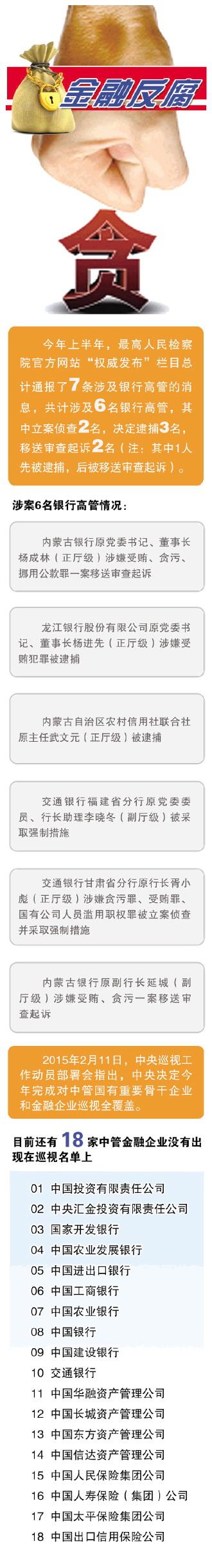 原标题:金融领域腐败风险高 上半年6名银行高管涉腐被通报