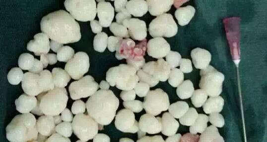 【男子肩膀长珍珠】宁波的小彭六七年前开始肩膀痛,阴雨天疼得手臂抬不起来。最近医生通过X光,发现他肩关节滑膜上长了密密麻麻的肿瘤,医生在他肩膀上打了四五个洞,用盐水冲出了111颗小瘤,大的像蚕豆,小的像绿豆,密密麻麻装了半个铁盘。