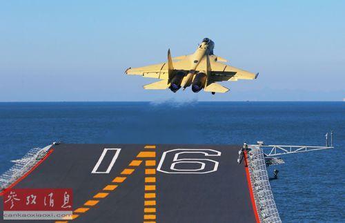 目前,中国海军仅拥有一艘航母即“辽宁”舰,它于2012年入列。其舰载机以歼-15为核心,目前,后者至少有6种型号仍处于测试当中,首飞是在2009年,2010年它从模拟航母14度倾角滑跃甲板的起飞平台上,完成了首次试飞。2012年,歼-15开始在“辽宁”舰上起降。2013年9月,它又以最大起飞重量起降于航母甲板上。