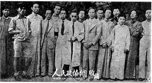 北平漫画展部分发起人在中山公园合影。自左至右:梁津、张振仕、孙之儁、王君异、冯棣、王城棣、刘凌沧、张启仁、王石之、麦金叶、张泰元、刘如严、谭沫子、王青芳、苏世。