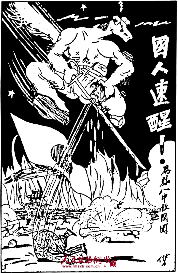 孙之儁漫画《国人速醒》,原载《世界画报》第306期。