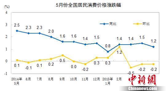 2014年5月-2015年5月全国CPI涨幅。图片来自国家统计局网站
