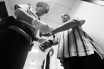 宣判结束后,赵国军被带出法庭 摄/法制晚报记者 曹博远